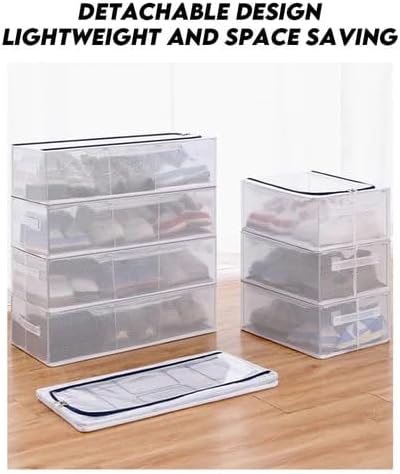 CONVENIENT STORAGE: These clear bins with handles provide a organized, space-saving solution for storing and accessing shoes.